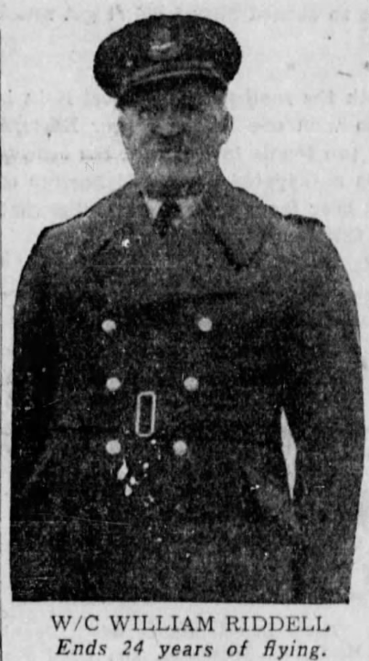 Wing Commander Riddell first handled the joy stick of a plane when he was 18, and his retirement marks the end of 24 years' first-rate flying during the most important years of development of aviation in Canada and the world.
